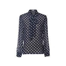 Sisjuly השרוול הארוך לבן הכחול השחור נשים חולצות פולקה דוט Stand צווארון וינטג פַּרְפַּר שיפון החולצה OL אביב סתיו חולצות