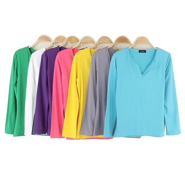 Women Korean t shirt Basic V Neck Long Sleeve Fitted Plain Top Solid Stretch Shirt Autumn Clothing Tops Slim T shirts harajuku