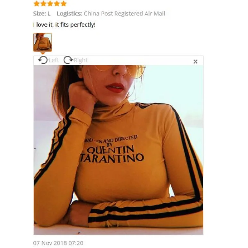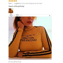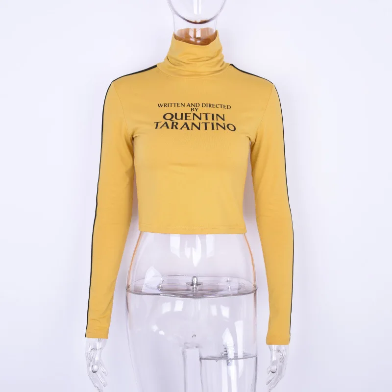 Long Sleeve Tshirt Women Yellow Turtleneck Quentin Tarantino Letter Print 2018 Autumn Short Tshirt Women's Clothing Wholesale
