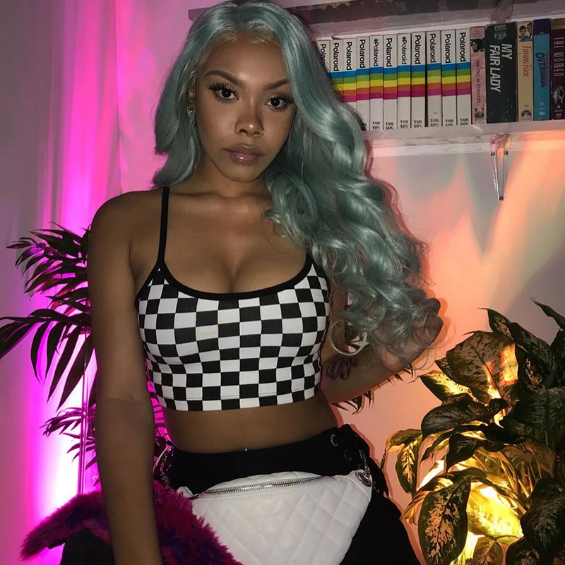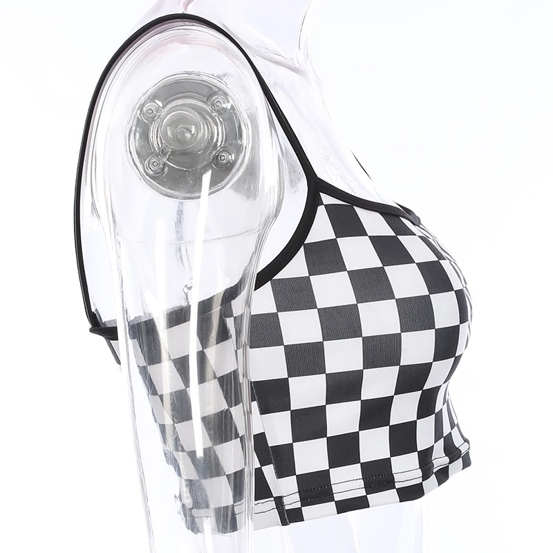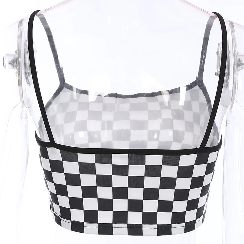 SUCHCUTE Women Sexy Checkerboard Print Crop Top Strap Backless Plaid Camis Summer Streetwear Tops For Women Cropped Tank Top