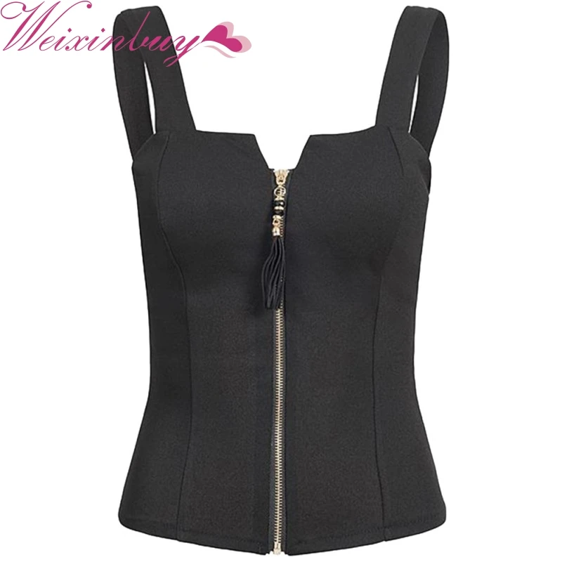 Top Fashion Sexy Small V Zip Black Vest Bow Beauty Back Nice Crop Top Women Ladies XL 2Xl Slim Thin Waist Shirt W1
