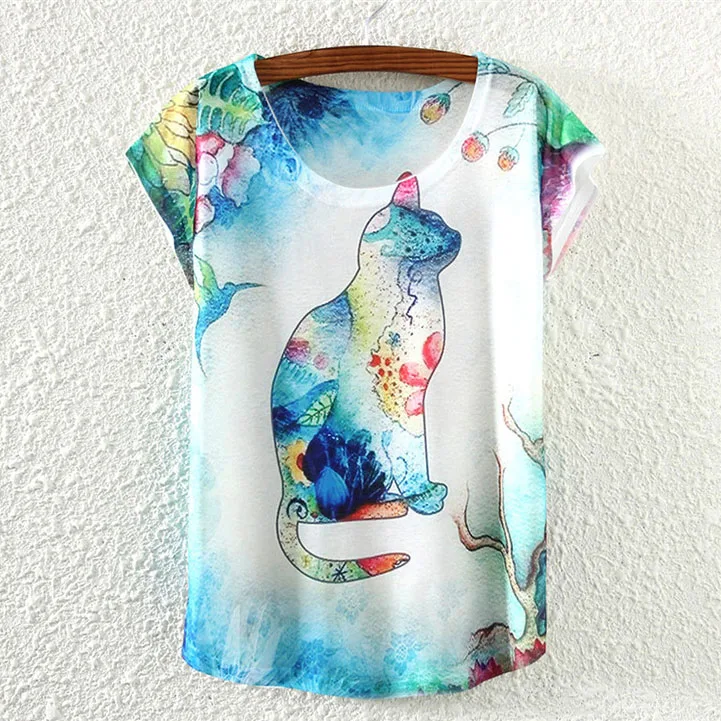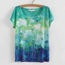 Free Shipping 29 Styles Floral Print O-Neck T Shirt Casual Tops Women T-shirt Female Fashion Plus Size
