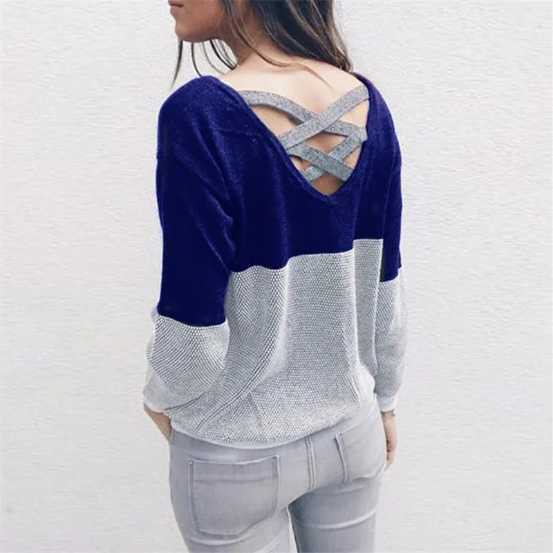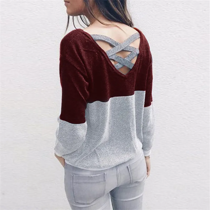 נשים סוודר סייד גודל שני S-5XL פלוס תלבש הולו מתוך חשופת גב האפודה מקרית שרוול ארוך למעלה חולצה למטרות סתיו חורף