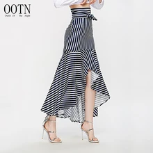 | OOTN Boho ראפל סימטרי ארוך חצאית נשים סתיו כחול פסים בגובה המותניים חצאיות נקבה סדיר פַּרְפַּר Sashes חצאיות 2018 |