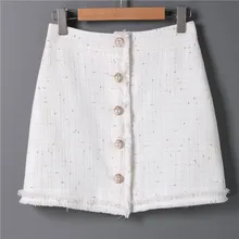 | נשים מקרית טוויד חצאית מיני נקבה אלגנטי בגובה המותניים לבן צמר גלישת חצאית סתיו אופנה נקבה מפלגת קצר חצאיות Talever |