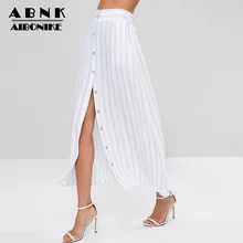 | AIBONIKE כחול נשים בחצאית פסים לבנות 2018 אופנת הקיץ הארוכה חצאית ארוכה עד לקרסול לחצן מותן גבוה של ביגוד חצאית הנשים |