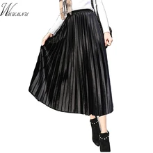 | Surmiitro קיץ חצאיות נשים 2018 אורך New Midi ברך לחצן אלגנטי קוריאני הספר שמש בגובה המותניים חצאית קפלים נקבה חצאית |